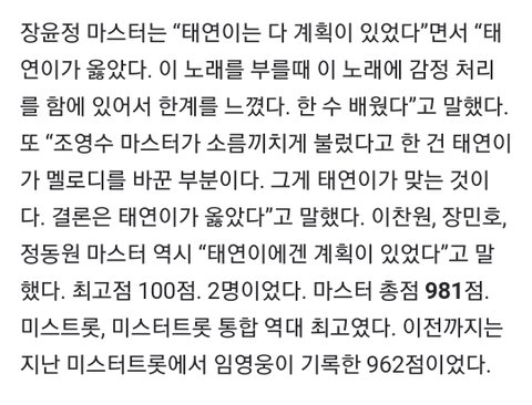전 시즌 통틀어서 준결승무대 최고점 달성한 출연자 김태연