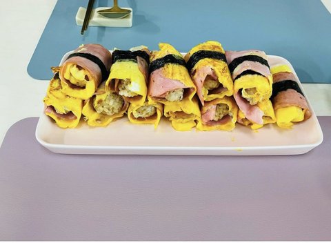 베이컨계란말이 베이컨과 계란을 후라이팬에서 돌돌 말음