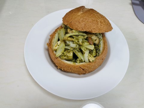 빠에빵에 가래떡과 루꼴라페스토 넣고 만든 파스타