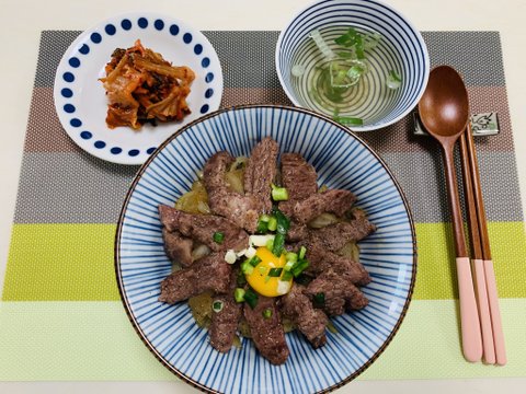 소고기덮밥 냉장고에 있던.고기 굽고 양파랑 계란 휘리릭해서 만든 음식