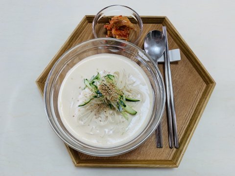 두부 두유 소금넣고 콩물 만들어서 만든 콩국수