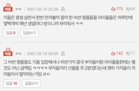 팬들이 가수 사랑해서 자발적으로 주는 선물인데 왜 지들이 왈가왈부야? 누가보면 지들 돈 뺏어서 선물해주는줄 알겠어