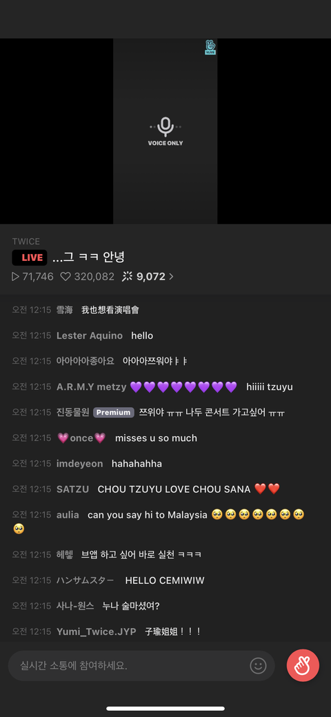 오늘 쯔위가 갑자기 브이앱을 켰는데