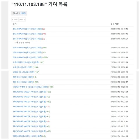한 아이피로 ㅋㄹㅂㅌ 나무위키 수정하고 그 뒤에 바로 ㅌㄹㅈ 나무위키 테러 함