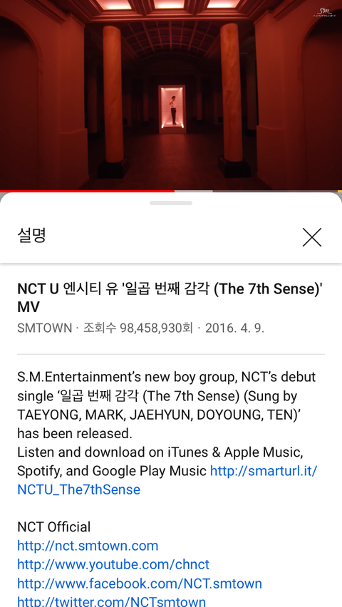 속보) NCT U 일곱 번째 감각 뮤직비디오 조회수 1억이 목전