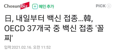 한국 OECD 37개국 중 백신 접종 꼴지 ㅋㅋ