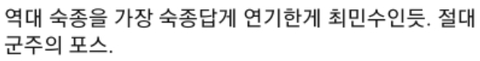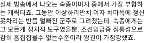 이 사극이 숙종을 현실적으로 가장 잘 표현했다고 함