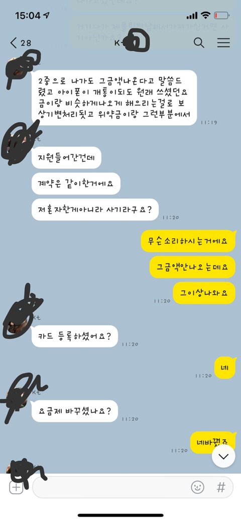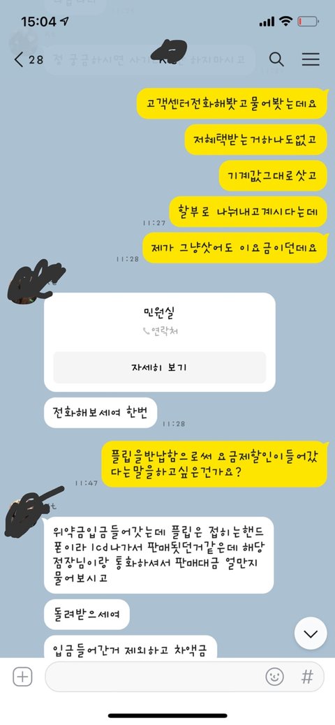고객센터에전화해서 설명을했지만 대리점이랑 합의보라는 무책임한말뿐이었고