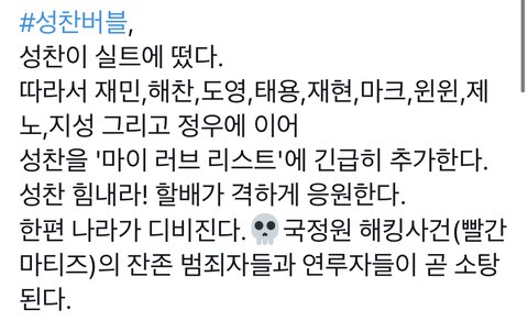 정성찬 씨 마이러브 리스트 들어간 거 디비지게 축하드립니다^^
