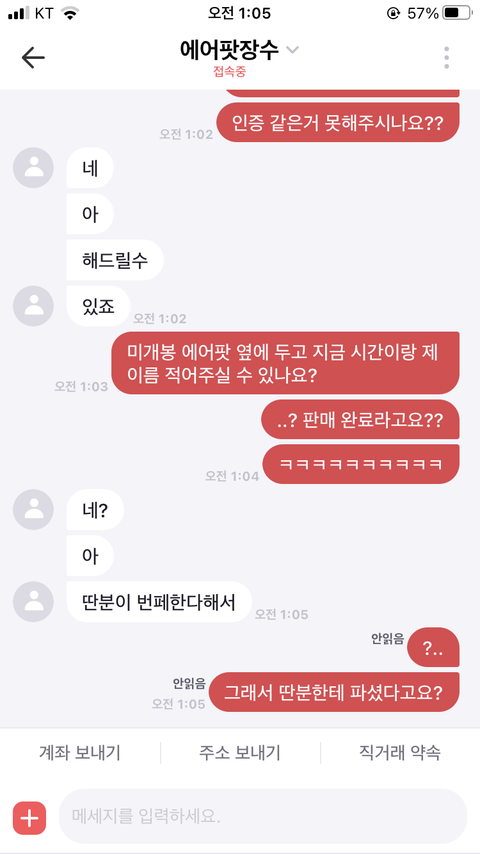 인증 해주겠다고 하다가 1분도 안돼서 판매 완료로 바꿔버림 ㅋㅋㅋㅋㅋㅋㅋㅋㅋㅋㅋㅋ 그래놓고 계속 네? ㅇㅈㄹ 하는ㄷ