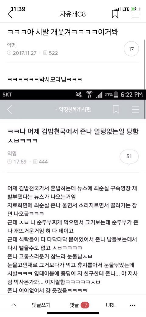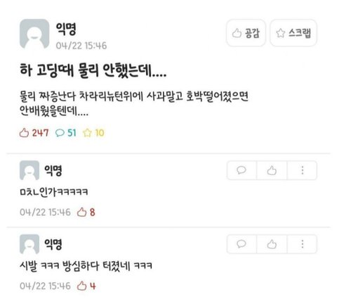 얘들아 미안해..내가 착각해서 썼던 뻘글이 톡선 갈 줄 몰랐음 좀 더 영양가있는 판을 위해 글 바꾸고 웃짤이라도 풀겠음 지금 머리박고 반성중