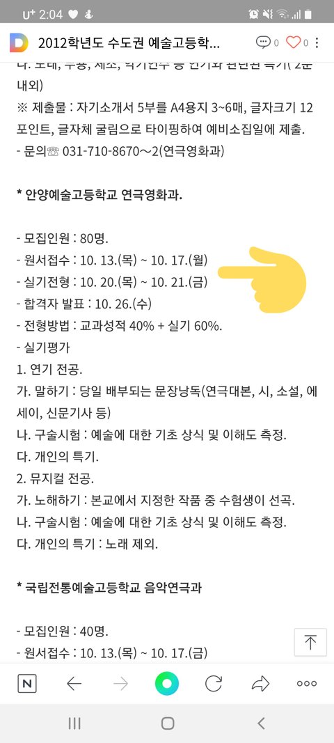 그리고 합격해서 2012년도 안양예고 신입생이 되었어.