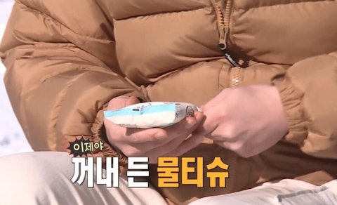 뒤늦게 생각난 물티슈를 꺼내서