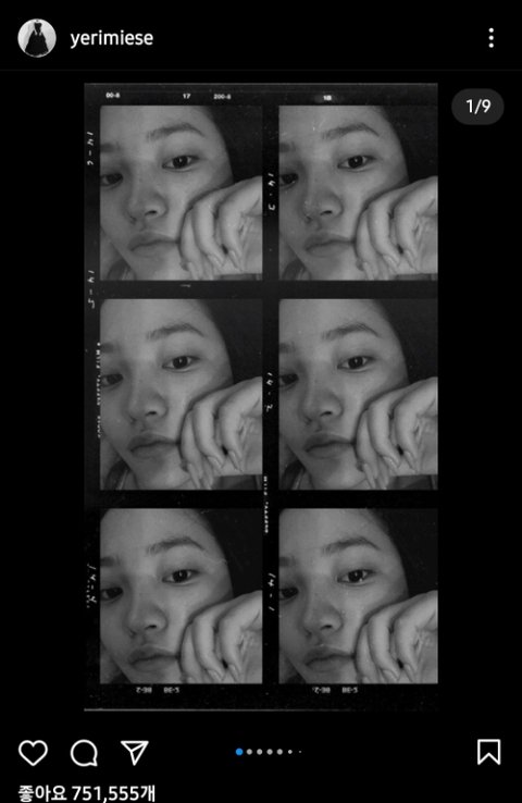 이걸 본 예리는 갑자기 인스타에 흑백사진 폭풍 업로드 ㄷㄷ