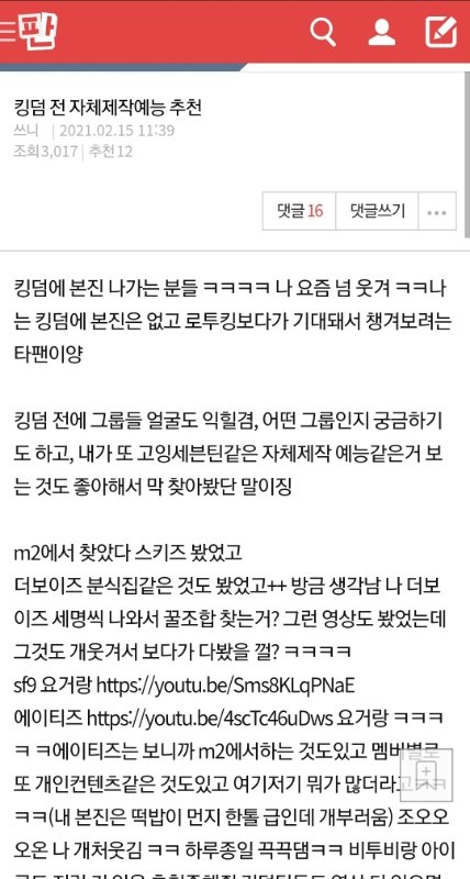 나 킹덤에 본진없는 타팬인데 글로벌 투표에 불만있는 사람들은 불만있는 이유가 뭐야? 불리하다고 하는데 왜 불리한건지 모르겠어. 오히려 이게 더 공정한 거 아니야? 스키즈,에이티즈는 국내팬이 작고 국외팬 많고, 더보이즈같은 그룹은 국내팬이 많고 국외팬 작다며. 비율따져가면서 해야지. 국내팬들한테만 투표권한주면 스키즈,에이티즈 아무리 잘해도 표 많이 못받잖아. 글로벌로 어느정도 팬들 투표수 비율맞추고 그 다음부터 투표하게하는게 훨씬 공정한 거 아니야?