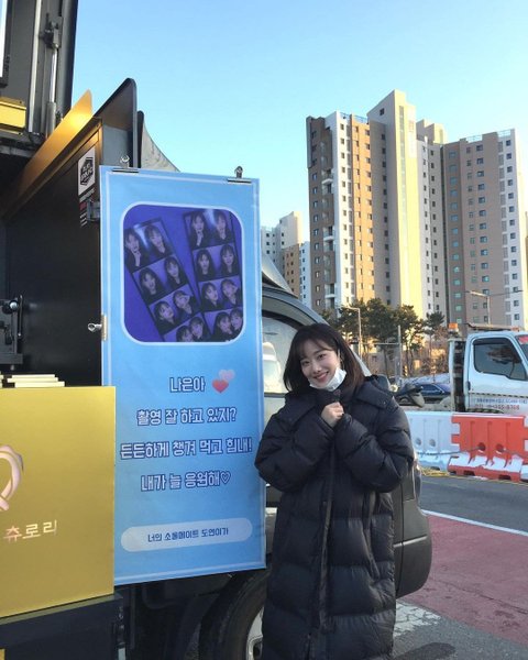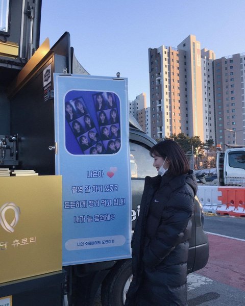 암튼 촬영장으로 커피차 보냈는데 멘트 봐바