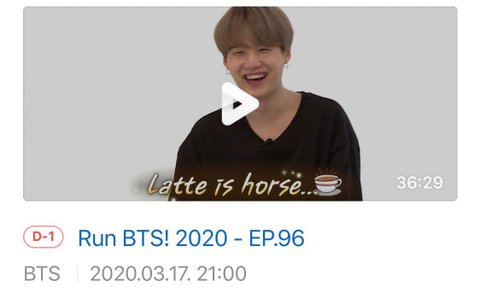 방탄 자체 예능 썸네일에 'Latte is horse..' 라고 자막이 달림