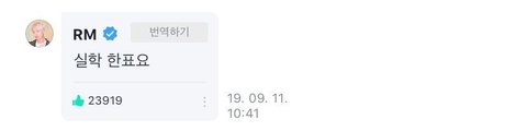 이런 주접 드립에 방탄 멤버가 덧글을 달아버림...ㅋㅋㅋㅋㅋ