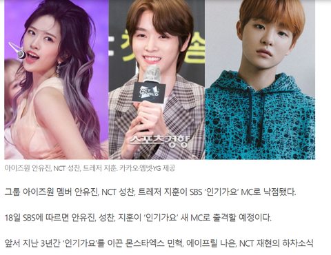 나만 몰랐냐 인가 새 mc래.. nct 성찬 아이즈원 안유진 트레저 지훈