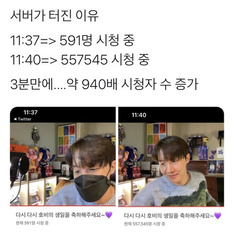 어제 제이홉 생일 라이브 때문에 막 브이앱,유튭,위버스 터졌다고 했잖음.
