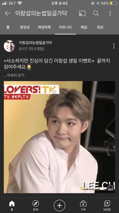 다들 할일없으면 이분 유튜브 최근 커뮤티니 들어가서 우리 모찌찹쌀떡창서비 생일축하이벤트 참여해보자