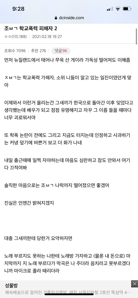 조병규 학폭 주장하는 사람 더나옴
