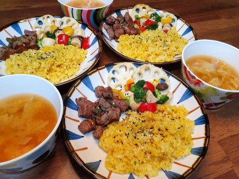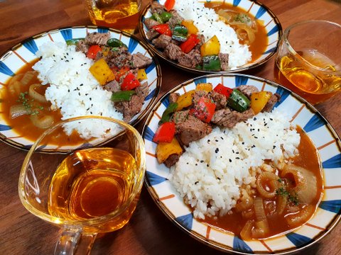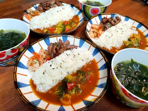 안심,야채구이 양파카레, 사과즙