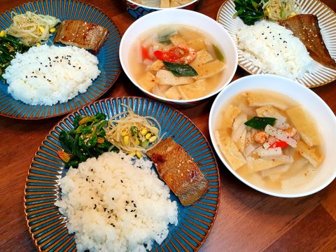 시금치무침,콩나물무침,박대구이,어묵국