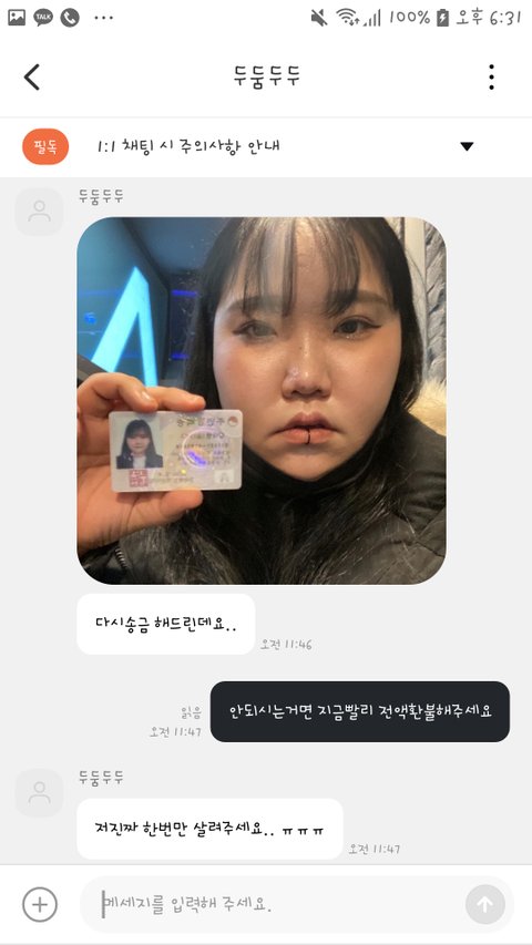 돌려준다고해서 보낸건데 물건받고싶으면 55더보내라서 아 당했네ㅅㅂ....느꼈음