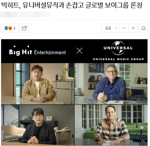 빅히트&유니버셜 합작보이그룹까지 낸다고함