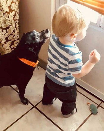 고향 찾은 이 대통령…반려견 '바비'와 생가터 앞에서 '방긋'
