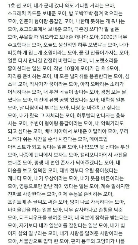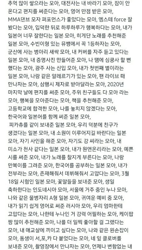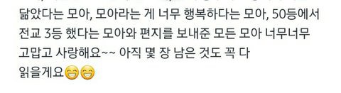 편지쓴 모아들 하나하나 언급해준