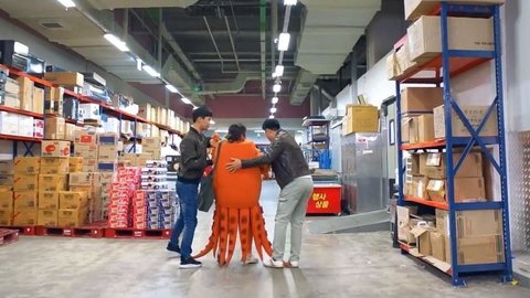 오징굿 댄스를 추며 한 마트에서 파견 근무중.