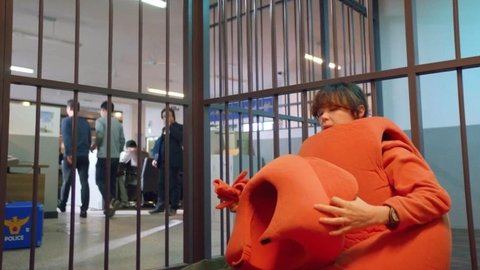 오징어 탈 벗지도 못하고 유치장에 갇혀버렸다 ㅠㅠ