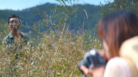 큰 볼일을 해결하러 온 안소니가 카메라를 보고 풀숲에서 등장