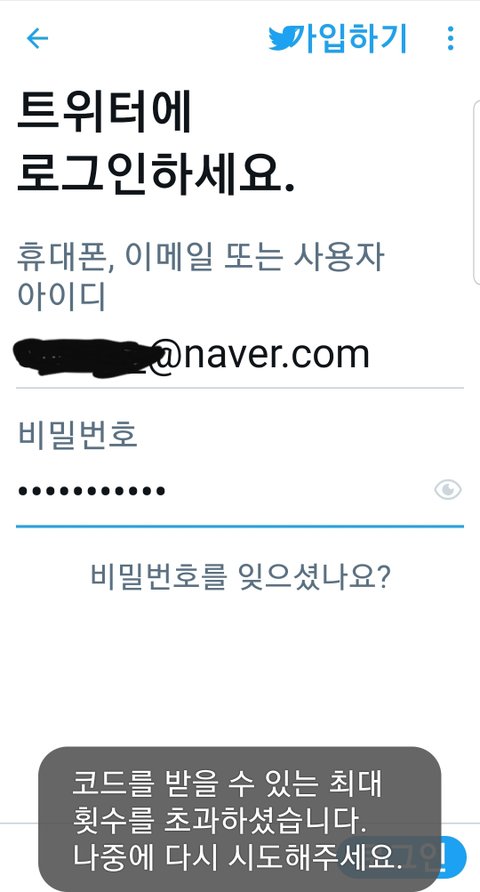 아까 트위터로 계정 만들어서 크레딧 모으고 다른 계정으로 모으다가 저 계정 지금 이렇게 코드를 받을수 있는 최대횟수 초과라고 로그인이 안돼