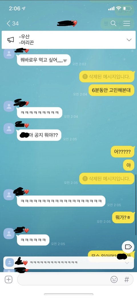 시바 공지 있는거 까먹고 친구들이랑 단톡한거 남친한테 보여주고 싶어서 그대로 캡쳐했다가 공지 들킴 ㅜㅜ