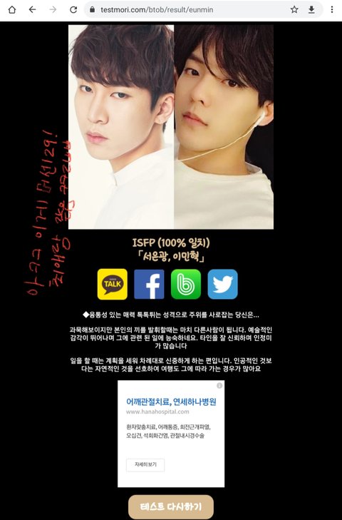 아ㅋㅋ최애랑 같다 원래는 intp인데 좀 다르게 나오네