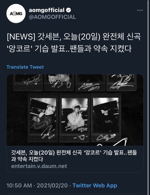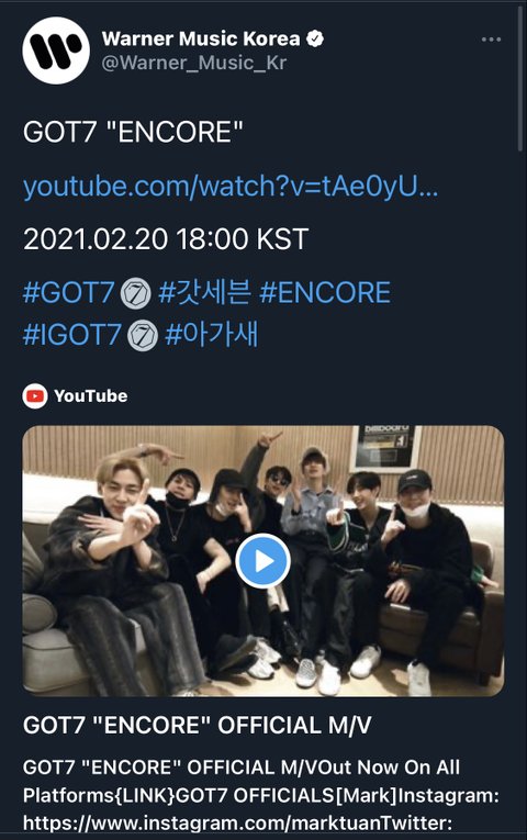 갓세븐 신곡 앙코르 많은 관심 부탁드려~~❤️