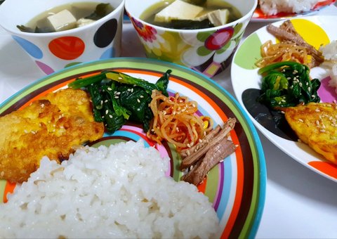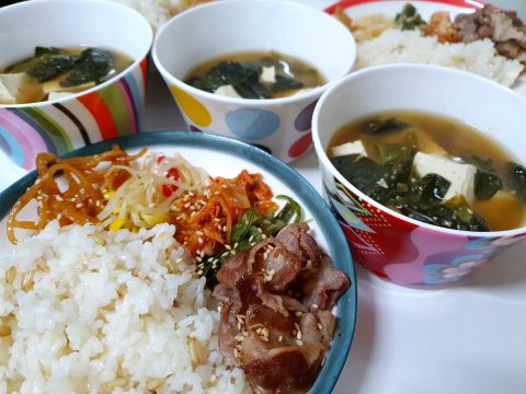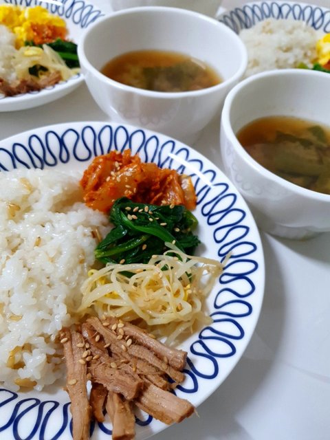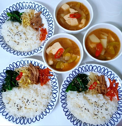야채두부된장국,시금치무침,콩나물무침