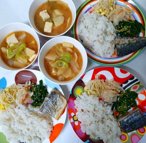 야채두부된장국, 삼치구이,시금치무침,