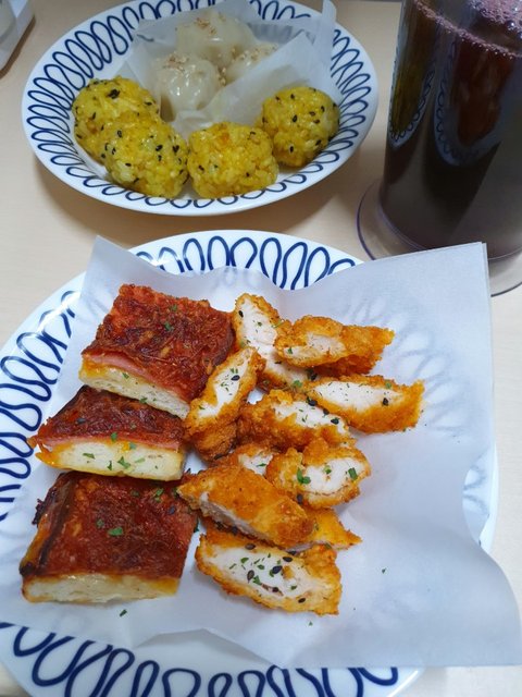 카레주먹밥, 만두찜, 복분자즙