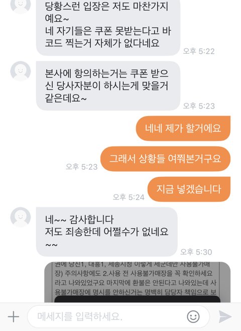 -구매자가 사용하러 갔는데 아예 쿠폰 찍는 바코드 자체가