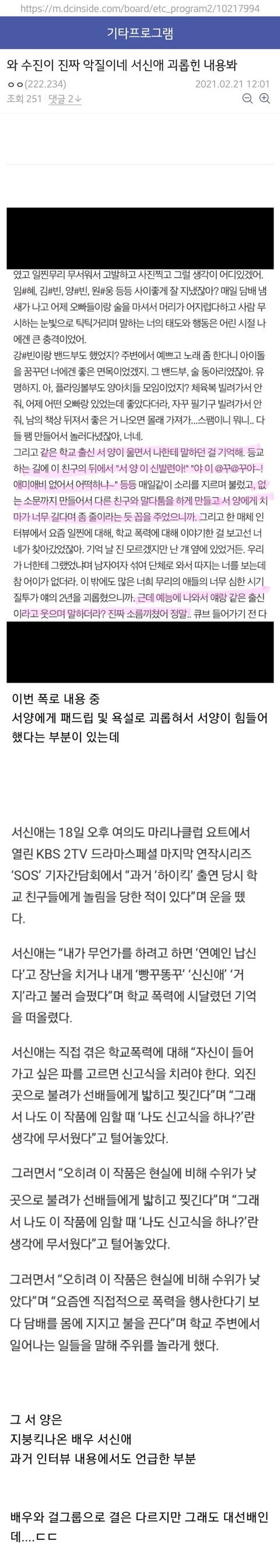 근데 서수진 데뷔초에 학폭 논란 있었음