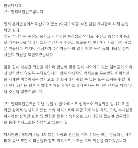 수진 학폭 글 거짓이라는 증거