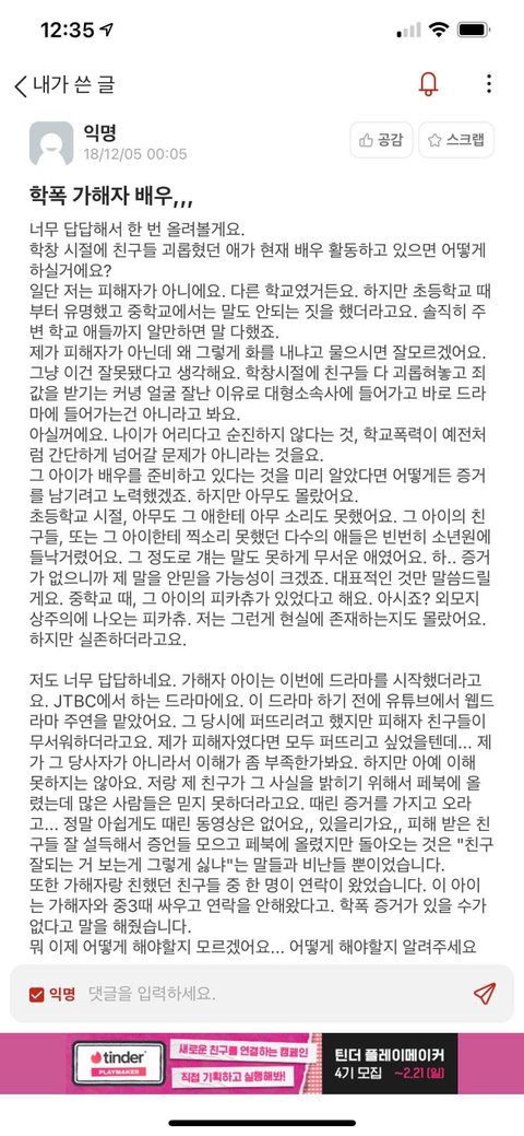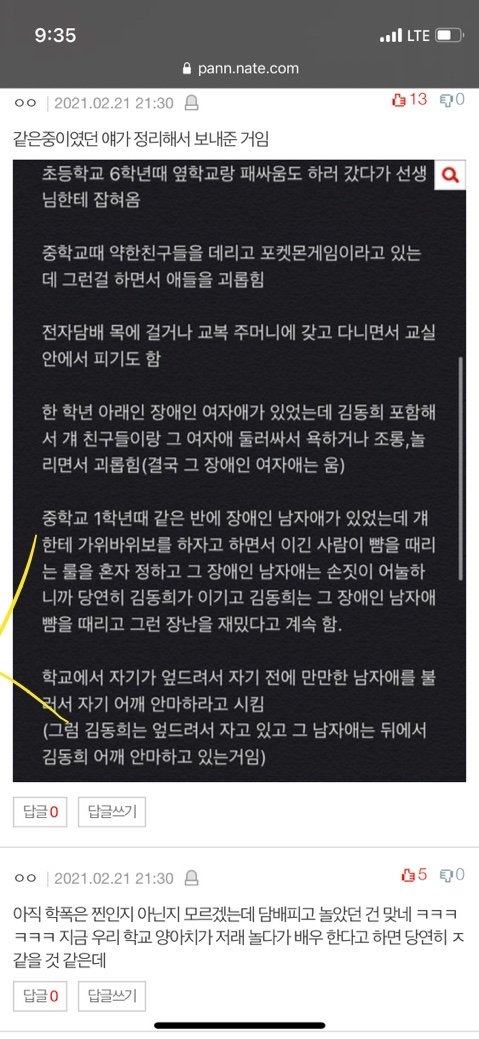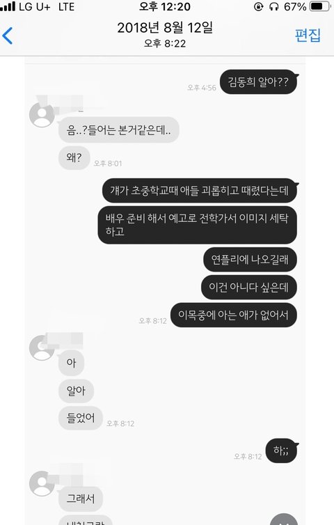 안녕하세요 네이트판에 어떻게 글을 올려야할지 모르겠지만 .. 갑자기 물타기로 올리는거아니고 정말 제주변에서는 페북댓글로도 학폭가해자다 이렇게 올렸는데 ..구씹당해서 그냥 그때부터 다들 그냥 포기하고 살았는데 갑자기 너무 화나고 빡쳐서 올리게되네요 ..지금 학폭 논란있는 분들은 김동희에 비하면 굉장히 귀여우신수준이구요 .. 본인이 아마 제일 잘알거에요 ..^^.....진짜 애들 때리고 괴롭히는게 일상이었던 애가 당당히 연예인이라는 직업을하고, 사람들한테 사랑받는게 너무 꼴보기싫어요 같은초나온 파장초 이목중아이들은 다알죠 쟤가 어떤앤지 그냥 이동네살고 옆학교산애들도 다알아요 사진이 12장밖에안올려지지만 댓글로추가할게요 ㅠㅠ 제가 글올린다니까 동창들이 증거더 모아보겠다하니 추가되는데로 더올리겠습니다 저는참고로 김동희랑 같은초 나왔어요 ㅋㅋㅋㅋㅋㅋㅋㅋ 나랑 말 한번 안섞어본 김동희야 니친구가 나 좋아한다니까 대놓고 내앞에서 니친구보고 눈깔삐었냐?이런거 아직도 기억나 .. 그거 하나면 올리지도 않았지 초중딩때 더러운 과거청산하고 안양예고가서 배우하던데 넌 이렇게 과거뜰거 무섭지도 않았니? 친구들피카츄시키고 가만히 있는애들 때리고 옆학교 수일초랑 패싸움 하던 니과거 이동네애들은 다아니까 지금이라도 사과해