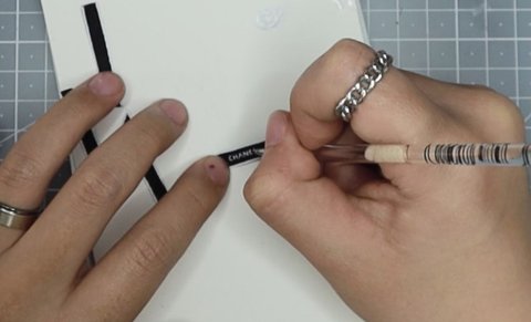 흰색 아크릴 물감으로 샤넬이라고 글자 써주기!