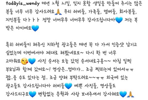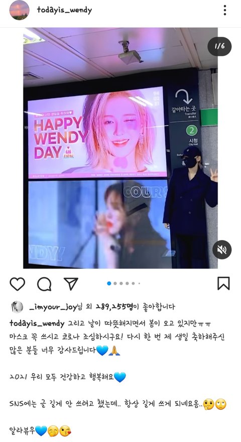 웬디는 인스타에 전광판 사진,영상 올려주고