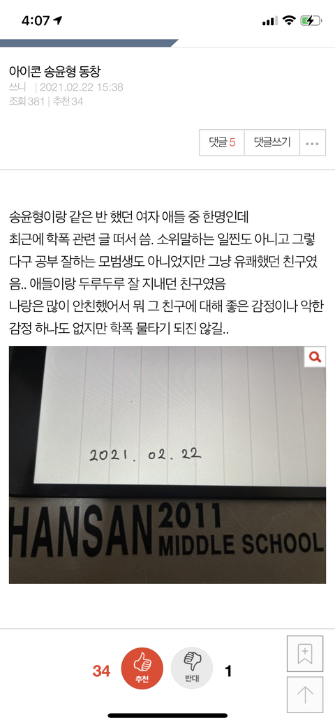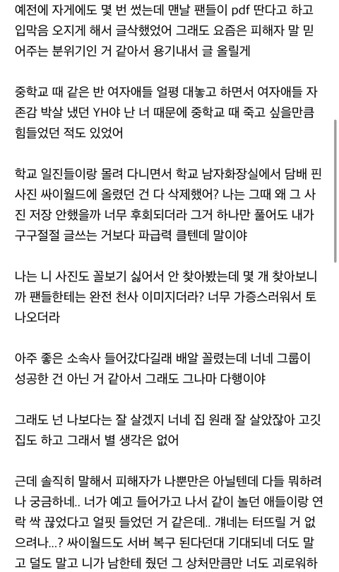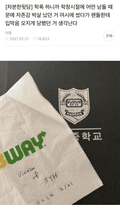 진짜 궁금해서 그런데 이게 학폭이야? 글쓴이부터가 학폭이라고 생각 안 하는 것 같은데