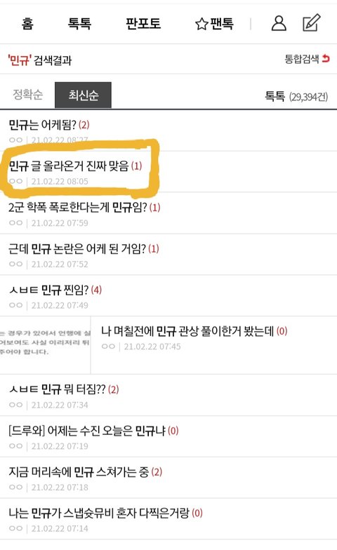 이 노란색 네모친 게시글 내용이
